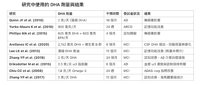 1.早期介入 DHA 可能最有效,特別是 MCI 階段。